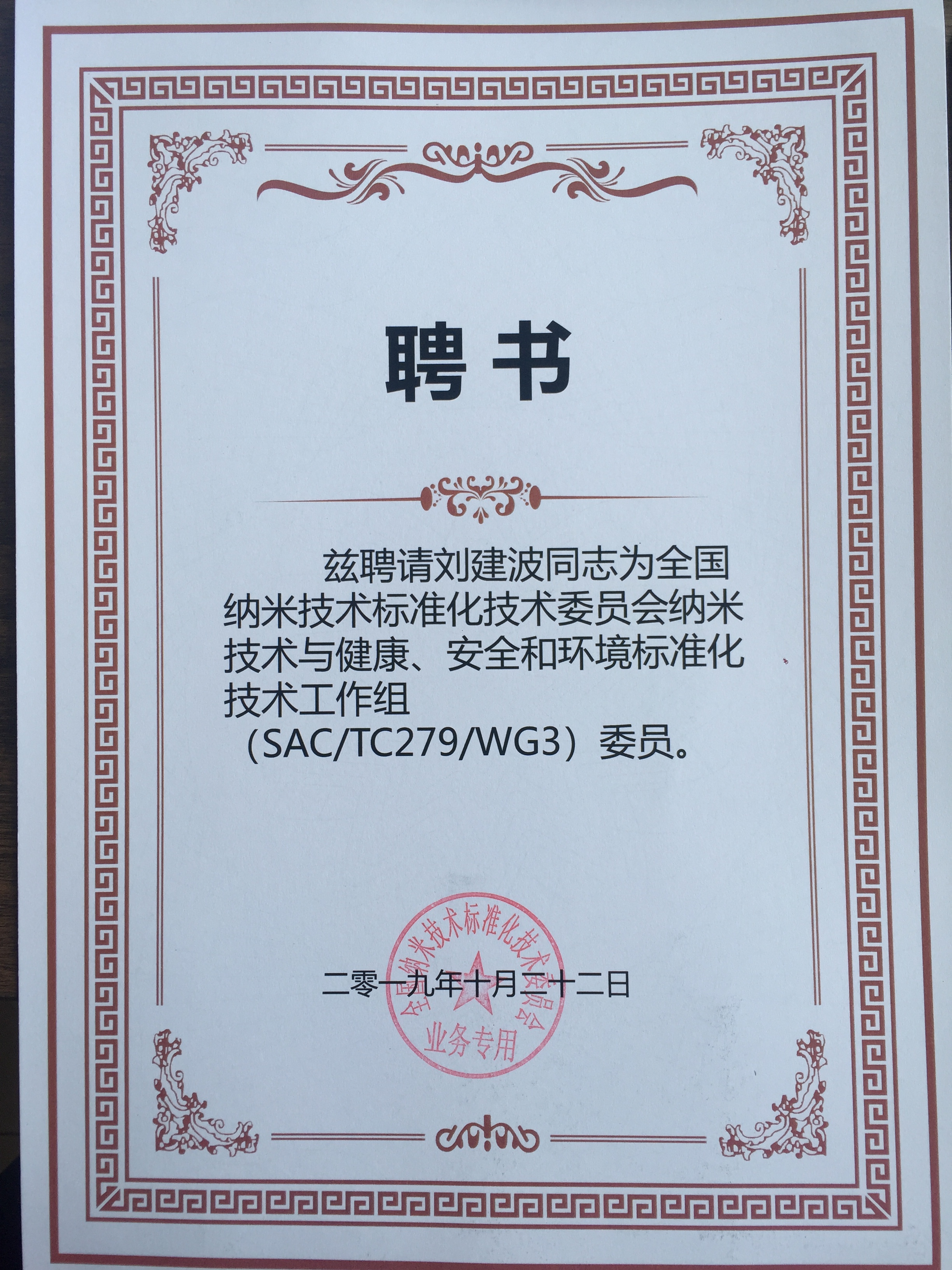 10月11日至12日,全国纳米技术标准化技术委员会(健康、环境和安全工作组)在北京召开换届会,LETOU官网光电工程学院教师刘建波博士当选为新一届委员会委员。