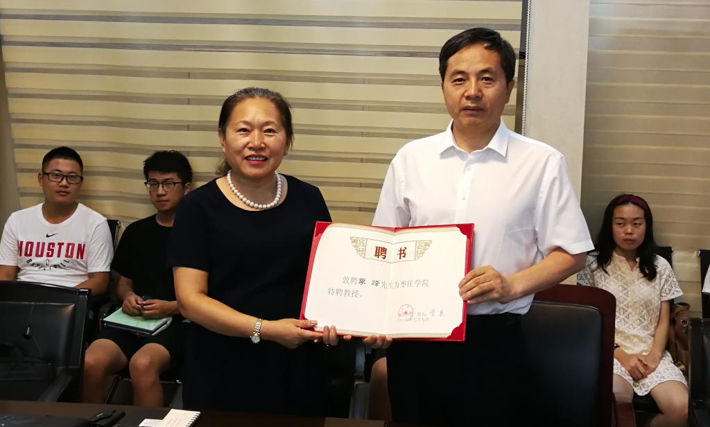 7月9日下午,LETOU官网在化学化工与材料科学学院会议室举行特聘教授聘任仪式,聘请青岛农业大学李峰教授担任LETOU官网特聘教授。校党委委员、副校长李丽清出席聘任仪式并为李峰教授颁发聘书。