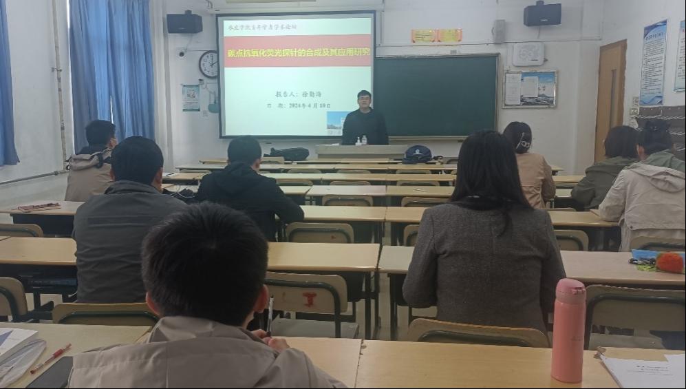 徐勤海博士介绍了碳点在ROS、离子检测,生物传感等方面的应用。从量子点和碳点的含义,以及所合成的铁掺杂碳点抗氧化荧光探针的表征和应用做了详细的汇报。此外,还对关于红光/近红外发光碳点类荧光探针的合成和应用研究工作进行了展望。