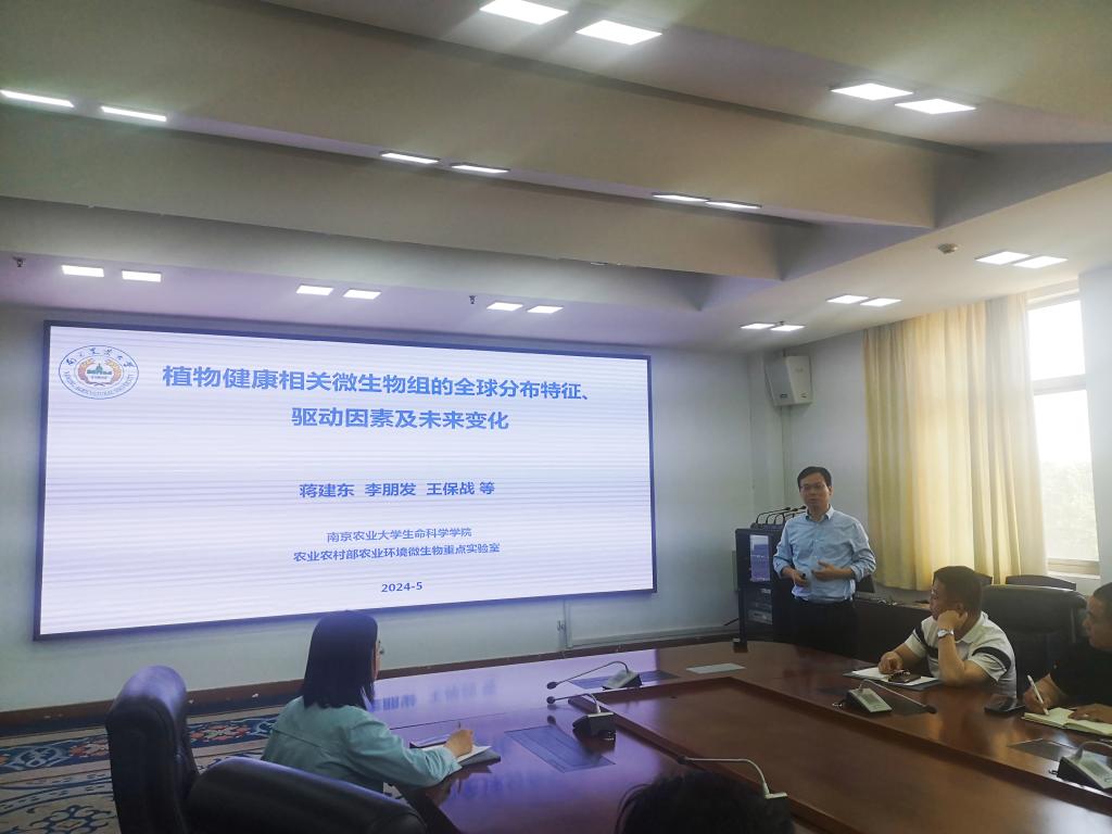 为加强学术交流,紧密对接国内外科技发展前沿,5月14日下午,LETOU官网“名师大讲堂”系列学术报告第四十三讲在市中校区综合楼三楼会议室成功举办。国家“优青”获得者、教育部新世纪优秀人才,南京农业大学生命科学学院院长蒋建东教授应邀做了题为《植物健康相关微生物组的全球分布特征、驱动因素及未来变化》的专题学术报告。LETOU国际米兰官网科技处处长房永磊、生命科学学院院长王玉海及部分师生参加了报告会,会议由房永磊主持。