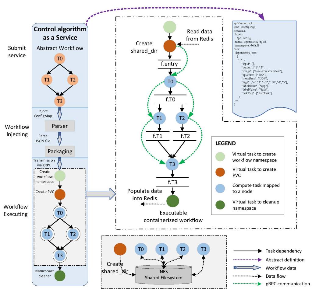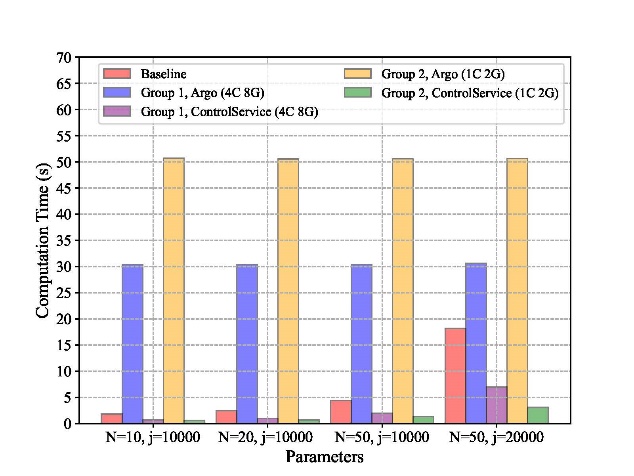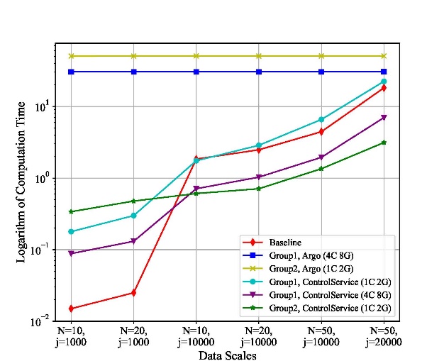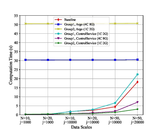 该方案能够将控制算法作为云工作流服务提供,利用定制的工作流引擎实现云工作流服务在云基础设施上的容器化执行。方案解决了控制算法的云工作流抽象表示问题,给出工作流的云服务定义,同时设计了云工作流调度引擎,解决了工作流云服务的交付和容器化调度执行问题。在实验中,以子空间辨识方法为例讨论了云服务表示形式和容器化实现过程。实验结果表明,与基线相比,ControlService在计算时间、递减百分比和加速比方面具有显著的性能优势。