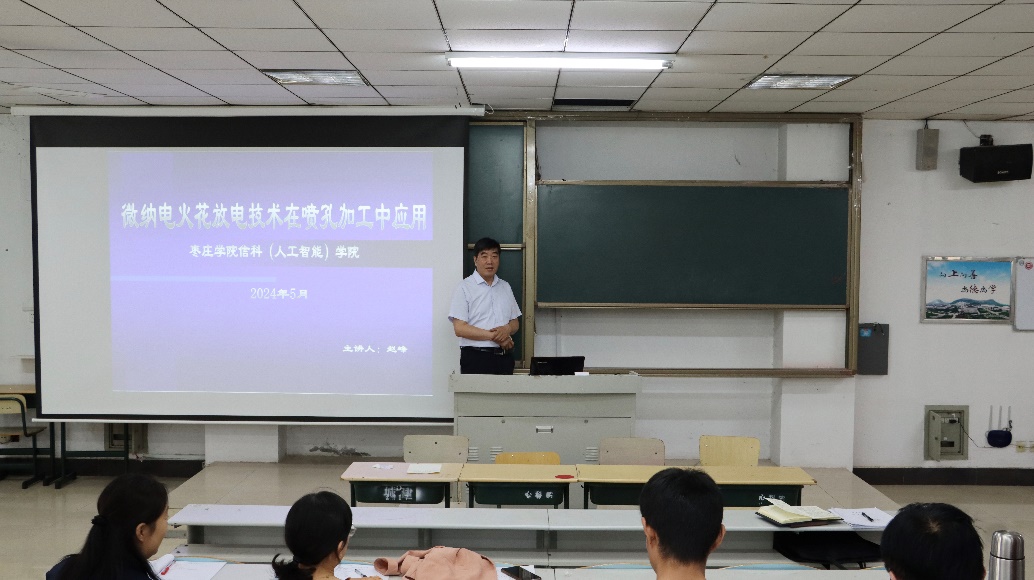 论坛上,赵峰教授做了题为“微纳电火花放电技术在喷孔加工中的应用”的学术报告。报告详细介绍了微纳电火花放电机理、复合加工工艺以及进丝机构研发等内容,分享了他们团队在微细电火花喷孔钻技术研发方面的研究成果。最后赵教授立足当前工厂现实,对人工智能智造技术的研发思路进行了展望。