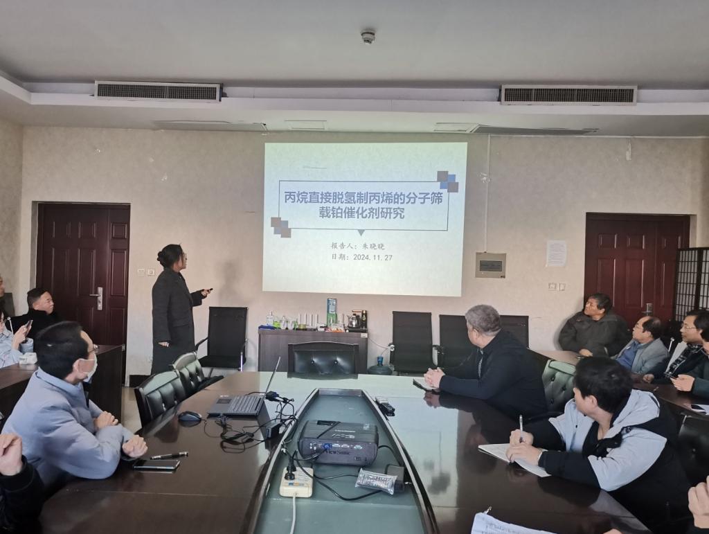 朱晓晓博士以“丙烷直接脱氢制丙烯的分子筛载铂催化剂研究”为题进行了报告。报告基于丙烷脱氢中铂基催化剂的烧结和积碳失活等问题,主要围绕通过增强金属物种与分子筛载体间的相互作用,设计、制备具有优异抗失活性能的分子筛载铂催化剂,研究催化剂在丙烷脱氢中的特性并阐明作用机制。