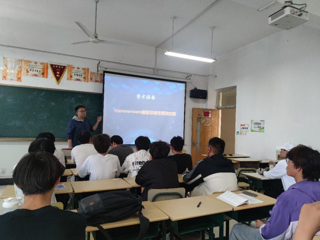 奚宽浩老师做了题为《Hammerstein模型非线性预测控制》的学术报告,主要介绍了Hammerstein模型预测控制的一些最新进展。报告讨论了Hammerstein非线性模型结构和当前的非线性过程控制方法,重点介绍了一种基于B样条函数的Hammerstein模型辨识和控制方法,探讨了B样条函数在非线性建模中的重要性,并讨论基于B样条函数的模型预测控制的应用,总结了用于非线性过程建模和控制的B样条函数面临的挑战和机遇。
