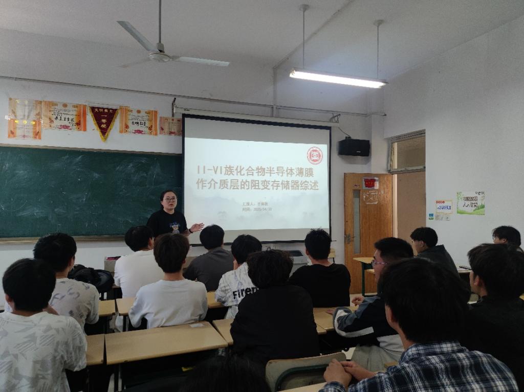 王奥秋博士作了题为《II-VI族化合物半导体薄膜作介质层的阻变存储器综述》的学术报告。阻变存储器(RRAM)因其结构简单、尺寸可缩性好、读写速度快、擦写耐受力高、数据保持时间长而受到广泛关注,但由于阻变机制的研究进展缓慢,导致阻变存储器性能的提高受到极大限制。II-VI族化合物半导体薄膜,因其结构简单,与硅基CMOS电路兼容性好,制备方法简单,因此在作为阻变存储介质材料的应用方面有一定潜力。但鉴于采用非扩散型电极(Ag,Cu电极),其导电机制并非氧空位导电,而一些特殊的问题,如铁电和阻变之间是否有直接关系,阻变循环方向的控制以及ZnS、ZnSe和ZnTe材料均具有阻变特性的共因是什么,引起了研究者的广泛兴趣。这些问题的解决直接指向阻变机制的阐述,有助于改善II-VI族化合物半导体薄膜作介质层的阻变存储的存储性能,推动阻变存储器的整体发展。