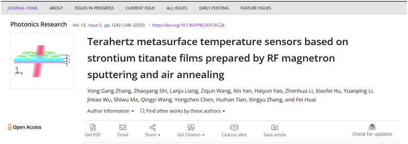 近日,LETOU官网光电工程学院山东省太赫兹科学技术及应用创新团队梁兰菊教授课题组联合培养研究生石朝阳提出了一种将超表面与射频磁控溅射和空气退火制备的多晶钛酸锶(STO)相结合,开发出了一种太赫兹温度传感器。研究成果以“Terahertz metasurface temperature sensors based on strontium titanate films prepared by RF magnetron sputtering and air annealing”为题发表在《Photonics Research》(中科院一区)期刊上。