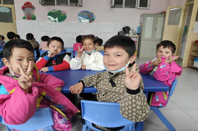 俗话说万事开头难,第一天的画面还历历在目。那天清晨,我早早的起床,带着一点兴奋、紧张和好奇,准备开始第一天的支教生活。当我以老师的身份进入幼儿园,我内心十分忐忑,面对性格各异的孩子,面对新的工作任务,感觉毫无头绪。班主任米丽开老师向孩子们介绍了我,我也热情地同孩子们互动。当与这一双双稚嫩纯洁的眼睛目光相对时,我看到了他们眼中的欣喜、好奇和激动。他们主动上来拥抱我,牵我的手,并询问关于我的一切,很快我就和他们熟悉起来,打成了一片,原来一开始的相遇并没有心中想象的那么局促。
