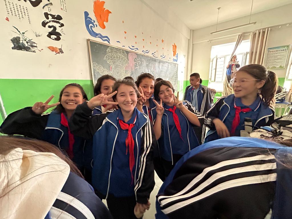 由于学校要开现场会,七年级整个级部都要在下午七八节课的时候大扫除。作为助教的我,走进了十九班,看着他们打扫。10多分钟之后,班里的女生打扫完了,围着我教我维语,用维语告诉我她们的名字怎么读,教我一些常用语句,还给我讲她们维吾尔族的一个重要节日—库尔班节,说到库尔班节,她们的表情和动作都开心夸大起来,用她们的亲身经历给我讲述她们这个节日里要干什么,吃什么,玩什么。还高兴的邀请我去她们家玩,吃她们家自己做的拉面,还有男生们,可能是想和我聊天,但是又不知道怎么开启这个话题,就装作不小心碰我的头发,当我回头想问是谁时,就会互相指认,也会和女生们斗嘴,反驳女生们说的话。