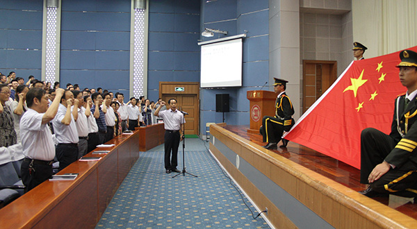 2016-09-07“面对国旗,我庄严宣誓:我志愿做一名光荣的人民教师,爱国敬业,诚信友善,厚德明道,淳谨修身,追求真理,勇于创新,敢于担当,乐于奉献,兼爱尚贤,博物戴行……做党和人民满意的好教师,为培养中国特色社会主义...