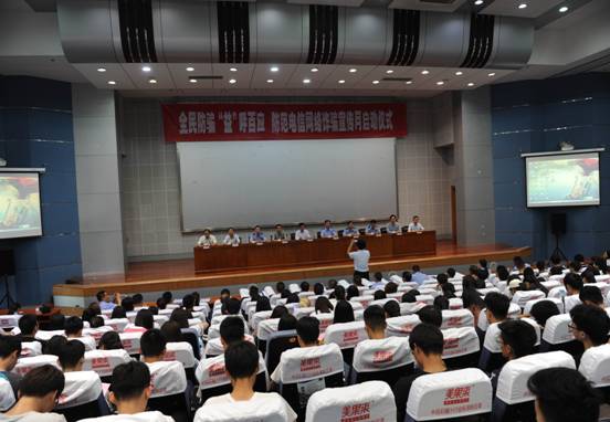 2017-06-086月7日下午,“全民防骗 益呼百应”防范电信网络诈骗宣传月启动仪式在综合楼报告厅举行。副校长明清河出席仪式并讲话,市公安局党委委员、副局长、市反电信网络诈骗中心主任田传海,中国人民银行枣庄市中心支行党委委...
