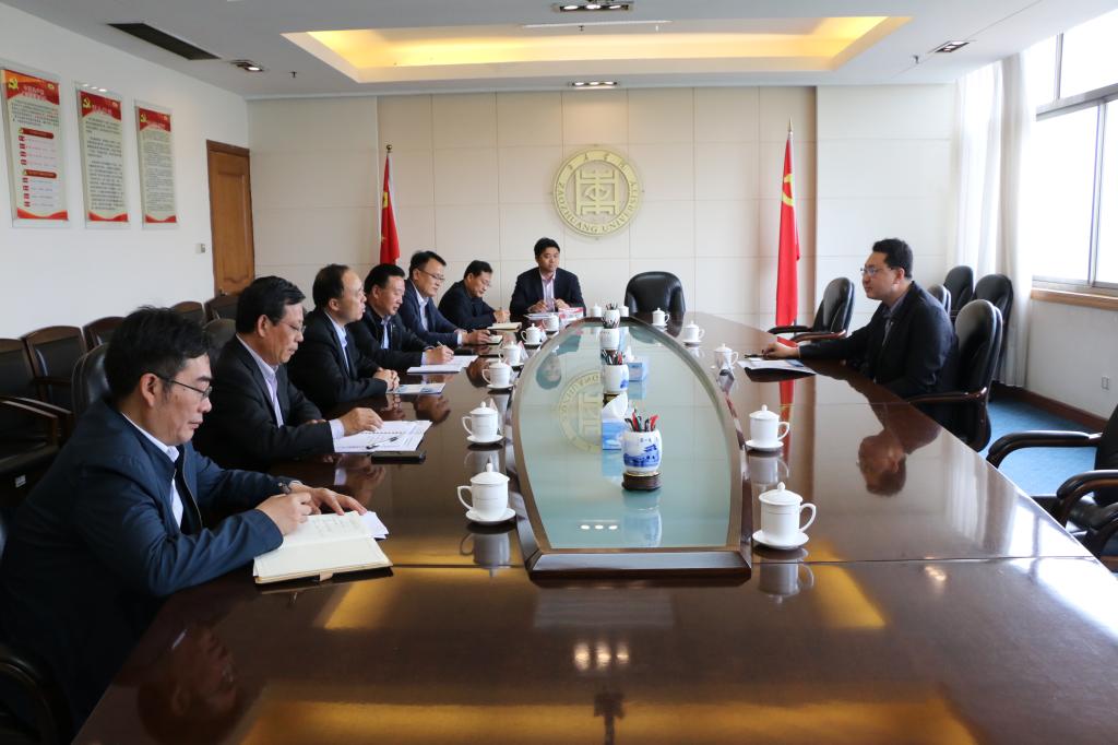 2019-05-145月12日下午,内蒙古科技大学冯志强副校长一行3人来校考察交流后勤改革发展和学生公寓管理等有关工作。校长李东在八楼会议室接见了来访客人,副校长李目海,学生处、后勤服务处、校园建设与管理处负责人陪同座谈,并...