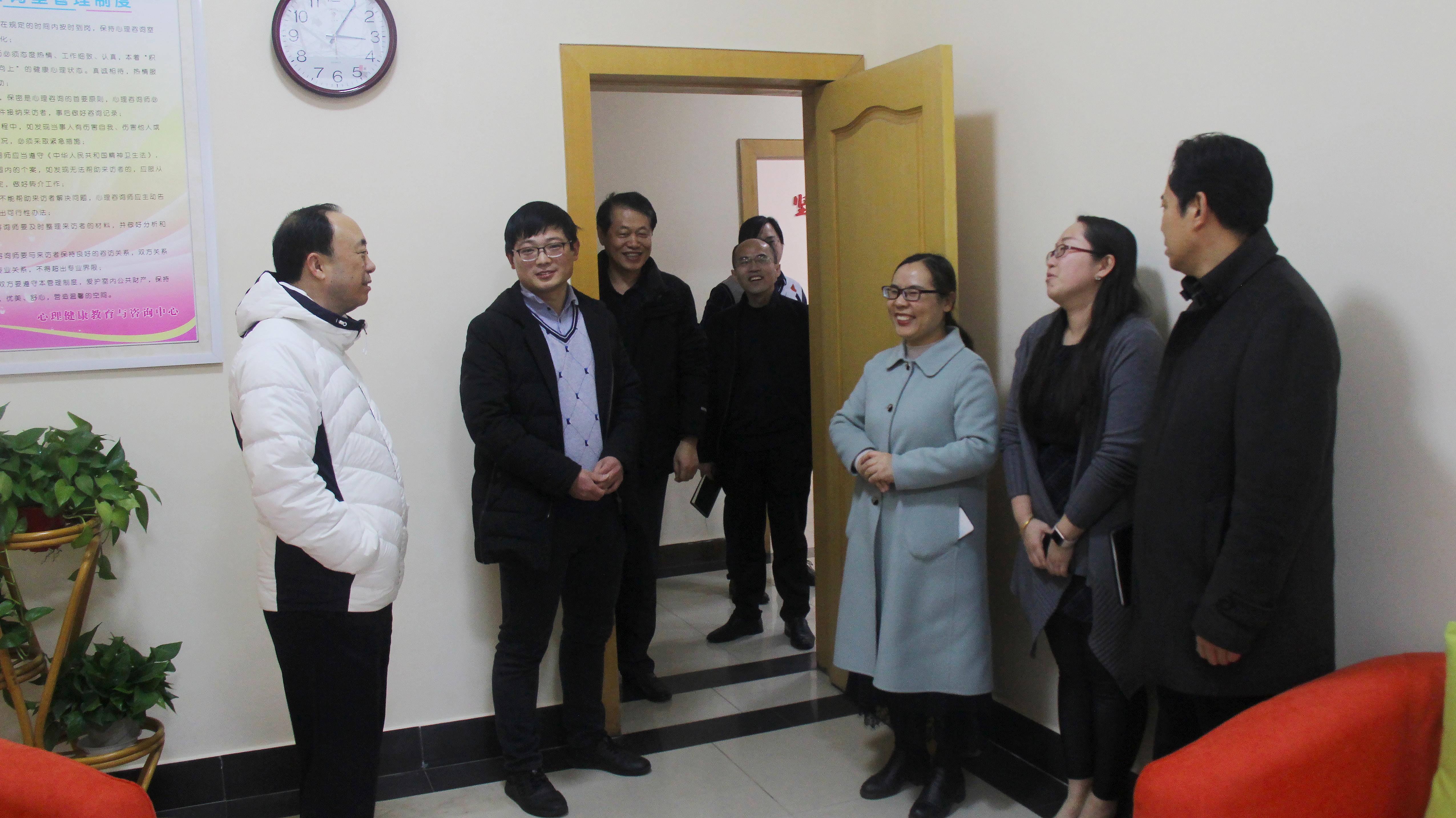 2019-12-1712月16日下午,校党委书记曹胜强到学生工作处调研指导工作,党委副书记曾宪明和办公室相关同志陪同调研。 曹胜强一行首先来到心理健康教育与咨询中心,先后参观了沙盘室、测评室、情绪宣泄室、心理咨询室等功能室...