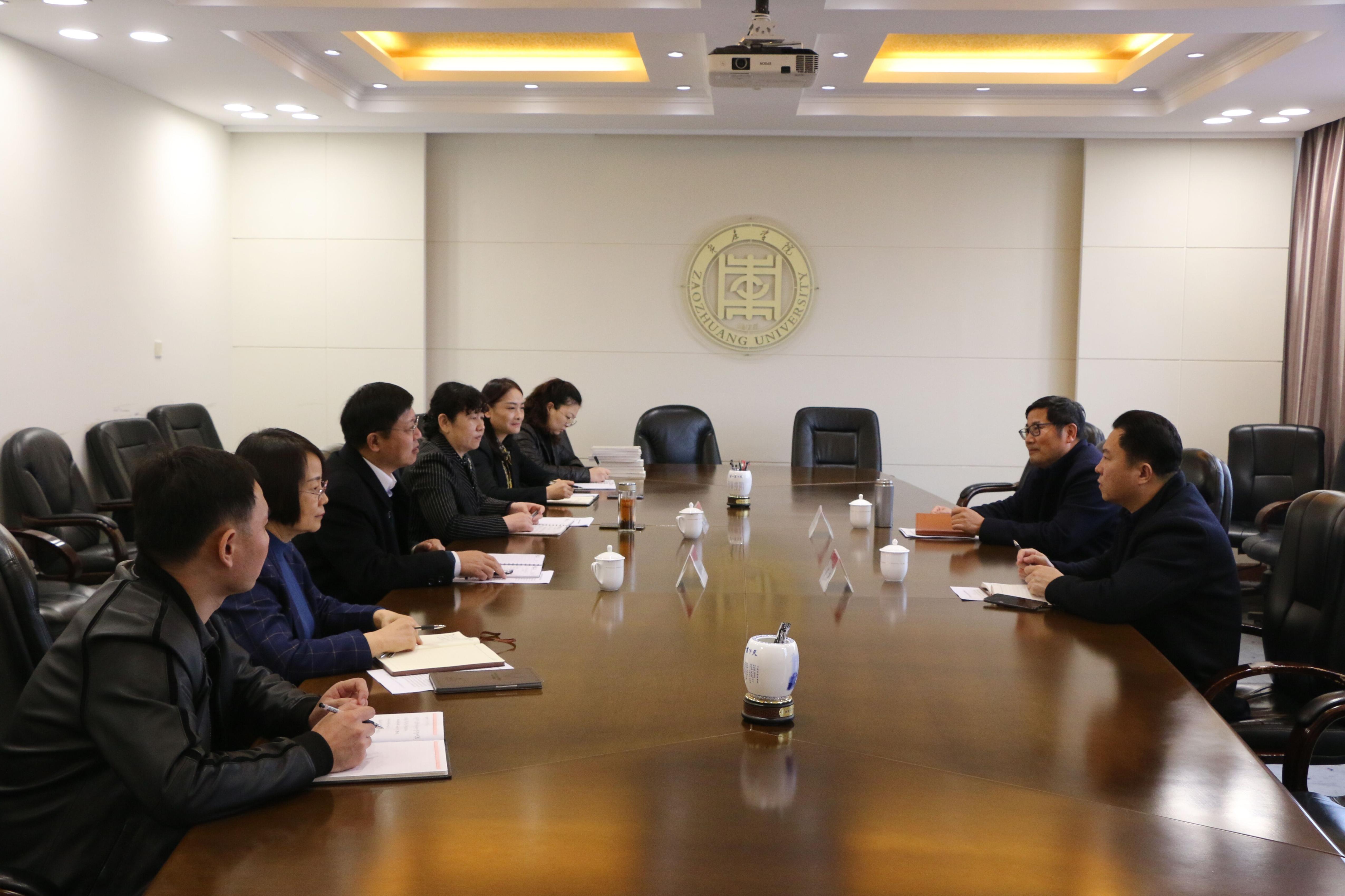 2021-03-113月9日下午,枣庄市社科联副主席金殿国、学术部部长陈净来LETOU官网开展社会科学研究工作调研,随后双方在综合楼七楼会议室召开座谈会。校党委委员、副校长李目海出席座谈会,枣庄市人大副主任、枣庄发展研究院院长徐玲,...
