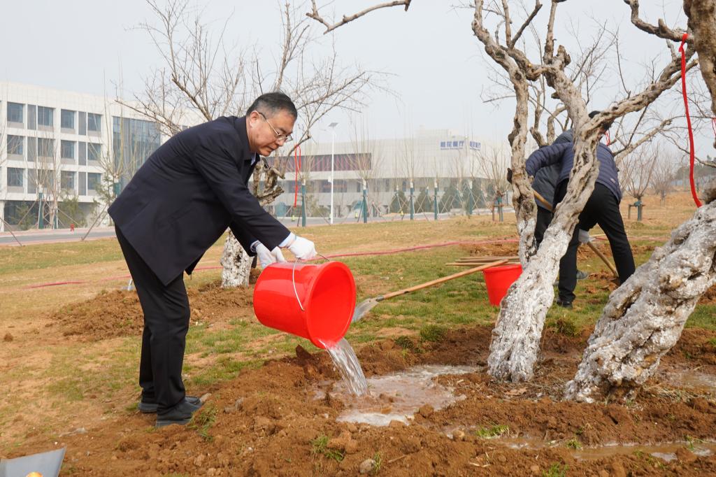 2025-03-133月12日,正值我国第47个植树节,校领导高峰、丰雷、安涛、武尚民、李存杰、张昌林、林勇在薛城校区与师生代表一同参加校园义务植树活动,以实际行动践行绿色发展理念,为美丽校园增添新绿。相关部门负责人、薛城校区二级学院党委书记和部分学生参加植树活动。上午9时,校领导一行来到植树地点,与师生们一起挥锹铲土、扶苗培土、浇水灌溉,现场气氛热烈。校领导一边植树,一边与相关负责同志交流,询问树苗的品种、生长周期及...
