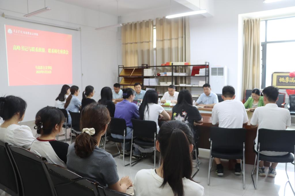 2025-05-23为进一步落实立德树人根本任务,推进领导干部深入了解和掌握学生思想动态,指导学生健康成长成才,5月21日下午,校党委书记高峰走进马克思主义学院,与所联系的2023级思想政治教育专业1班全体同学开展面对面交流,并为同学们讲授思政课。校党政办公室相关同志、马克思主义学院党政领导、2025届优秀毕业生代表参加活动。座谈会气氛轻松、和谐融洽。班长李浩从班级成员构成、学习情况、班级建设以及在社会实践、志愿服务取得成绩...